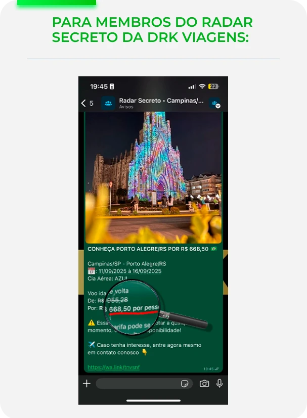 🔒 Este grupo é administrado pela DRK Viagens, agência de turismo legalmente constituída, com registro ativo no Cadastur (sistema oficial do Ministério do Turismo).