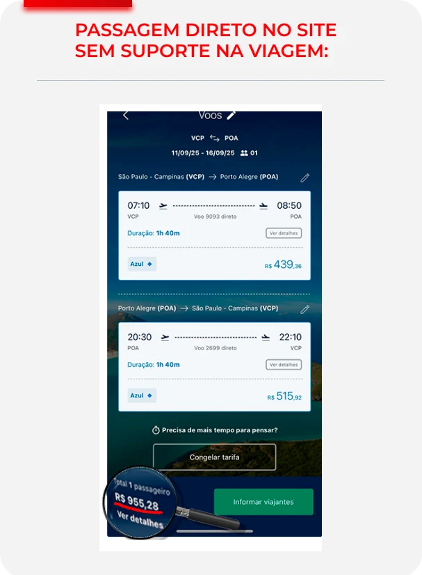 Os descontos são negociados por nós diretamente com as companhias e podem ser válidos por minutos, horas ou número de assentos disponíveis, por isso oferecemos dentro do grupo suporte especializado operacional e jurídico antes, durante e depois da sua compra - viagem garantida e risco zero.