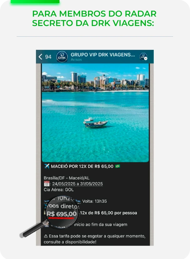 Se o seu cadastro for aprovado, você terá acesso ao nosso grupo exclusivo de promoções com saídas de Brasília